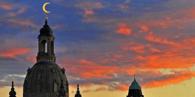 Christian occident in danger? Islamic crescent over Dresden's Frauenkirche (©dpa) |